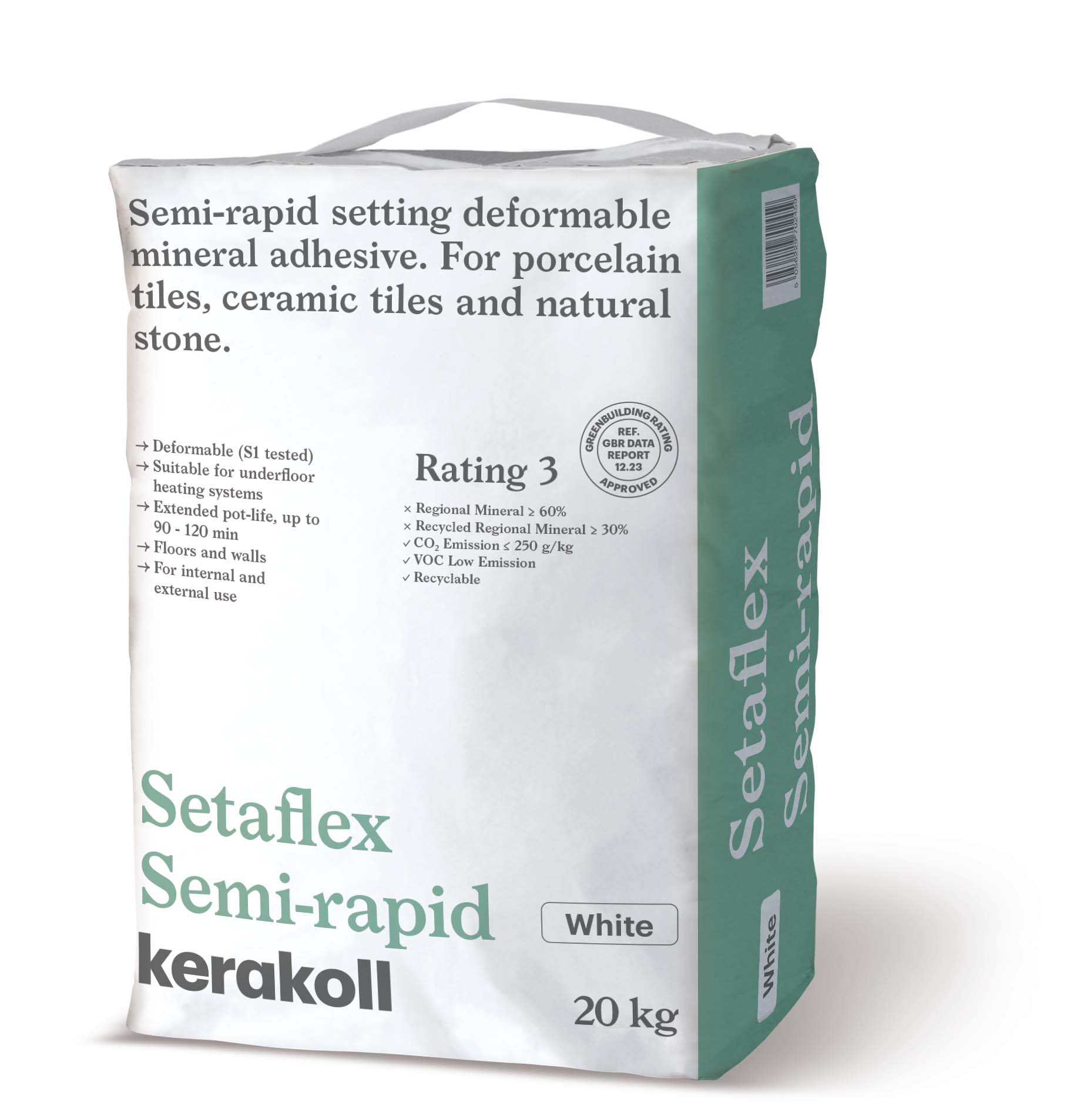 Kerakoll Setaflex Rapid is a polymer modified, flexible, rapid setting, cement based floor and wall tile adhesive with increased adhesion and reduced slip properties.